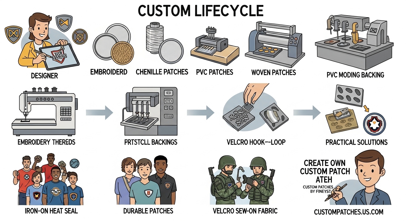 custom patches for sale, from traditional embroidered styles to soft chenille options.