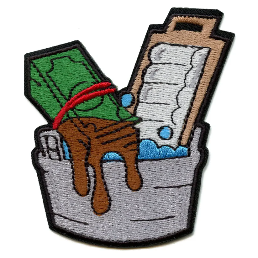 Dirty Money Washboard Patch is a unique and witty collectible featuring a visual pun on "laundering money," with a bundle of cash being cleaned in a washboard and bucket. This meticulously embroidered patch, provided by Custom Patches, is a perfect way to add a humorous and clever statement to your apparel or to enhance your patch collection. The Dirty Money Washboard Patch is ideal for adorning jackets, bags, or display boards, making it a distinctive accessory for those who appreciate wordplay and eye-catching designs.